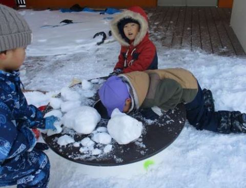 「みんな~雪かけて~!!」とお友だち☺